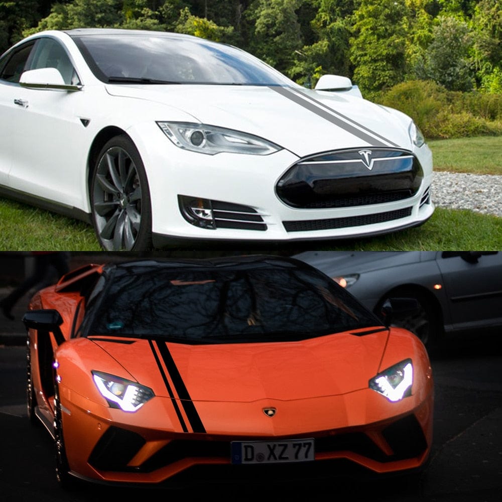 Les Stickers Voiture 2 Bandes sont parfaits pour personnaliser votre capot. Ils donneront un style tuning à votre automobile !
