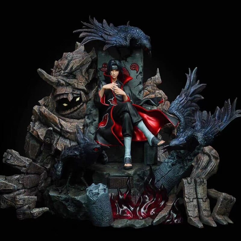 Itachi Uchiha, certainement un des personnages les plus connus de Naruto et apprécié pour sa personnalité magnanime et charismatique, et représenté ici assis sur son trône.