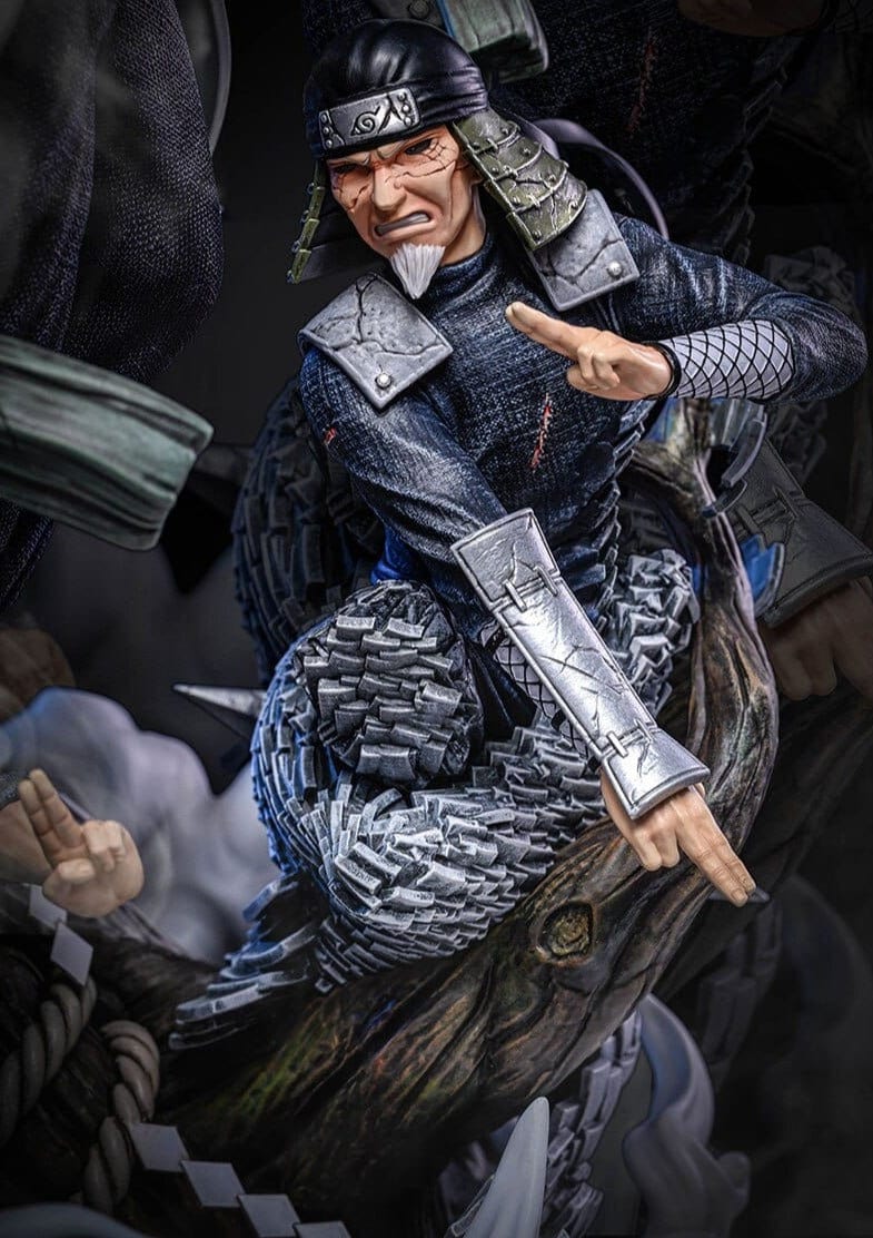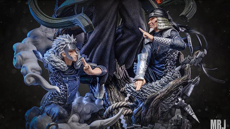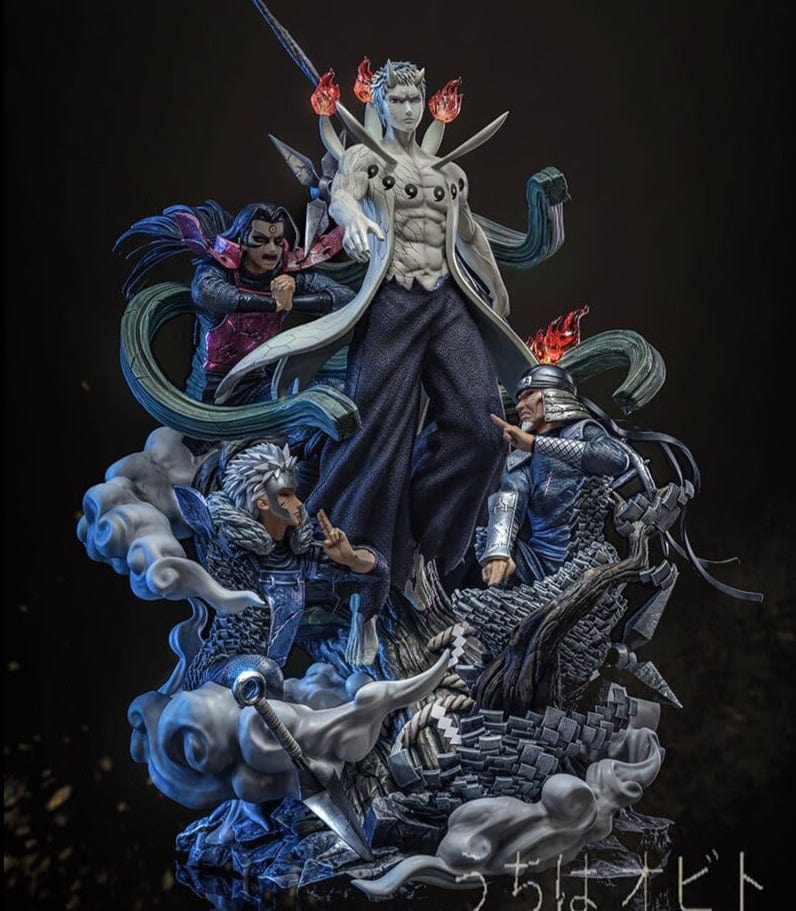 Obito Uchiha est l'ancien compagnon de Kakashi et Rin, tout trois élèves de Minato, le père de Naruto. Il est ici représenté en train d'effectuer un jutsu, accompagné par 3 anciens Hogake : Hashirama Senju, le 1er Hogake, son frère Tobirama le 2eme Hokage, ainsi que Hiruzen Sarutobi, le 3eme Hogake de Konoha.