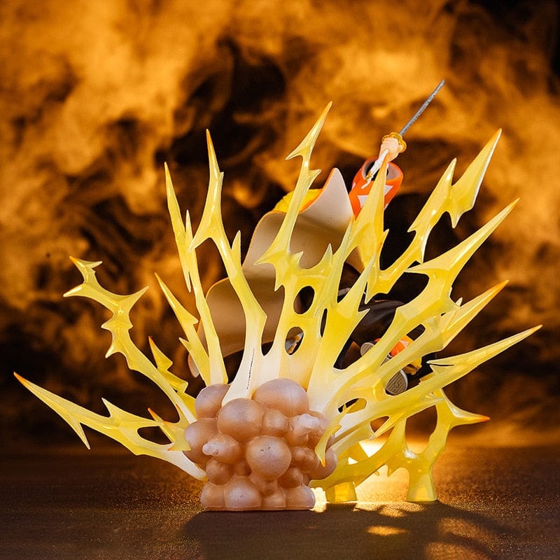 La Figurine Demon Slayer Zenitsu 21 cm représente le personnage dans son élément. Plein d'éclairs jaunes lumineuses autour de lui. Il est pris dans son élan pour abattre sa frappe foudroyante sur son ennemi maléfique. Zenitsu est habillé de son manteau ample jaune aux motifs triangulaires blancs, il a des cheveux blonds coupés courts. Son katana dans une main pour fendre les airs. Ses yeux sont fermés et son visage est serein, concentré.