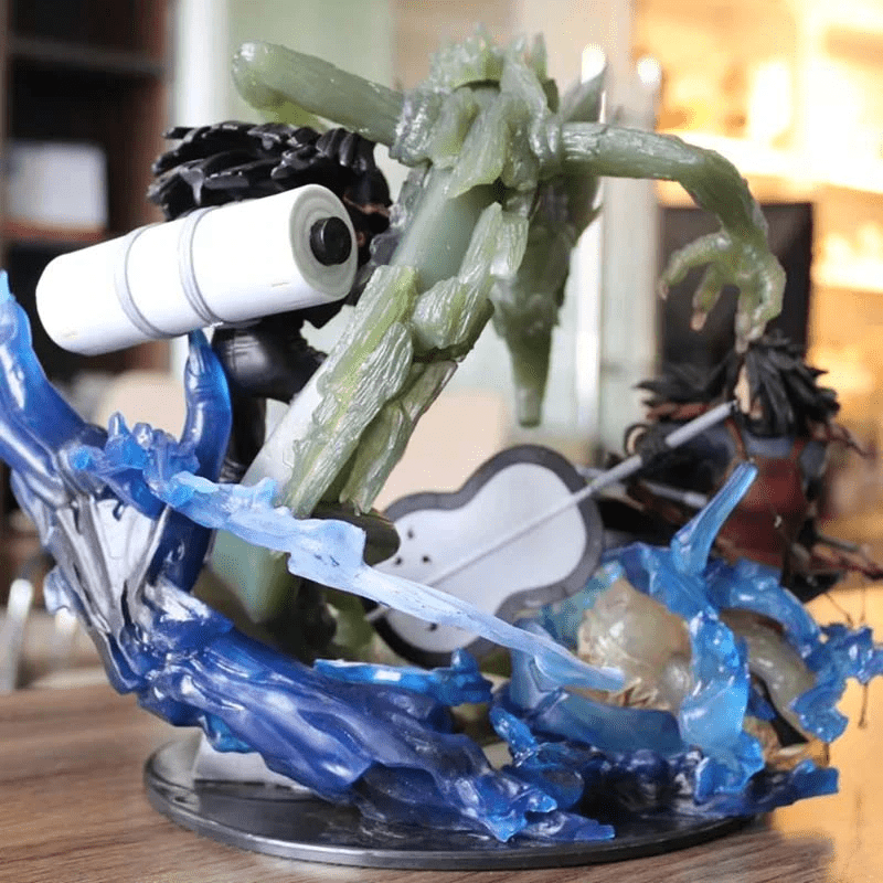 La Figurine Hashirama et Madara représente les deux protagonistes en plein combat. Madara est débout sur son dragon de bois de couleur vert, comme porté par lui, les mains tendues pour contrer son adversaire et Hashirama, lui, est enchevêtré dans son Bijû de couleur bleue, son arme à la main. Comme un moment figé dans le temps, du jouet tu pourras ressentir les émotions de l'affrontement.