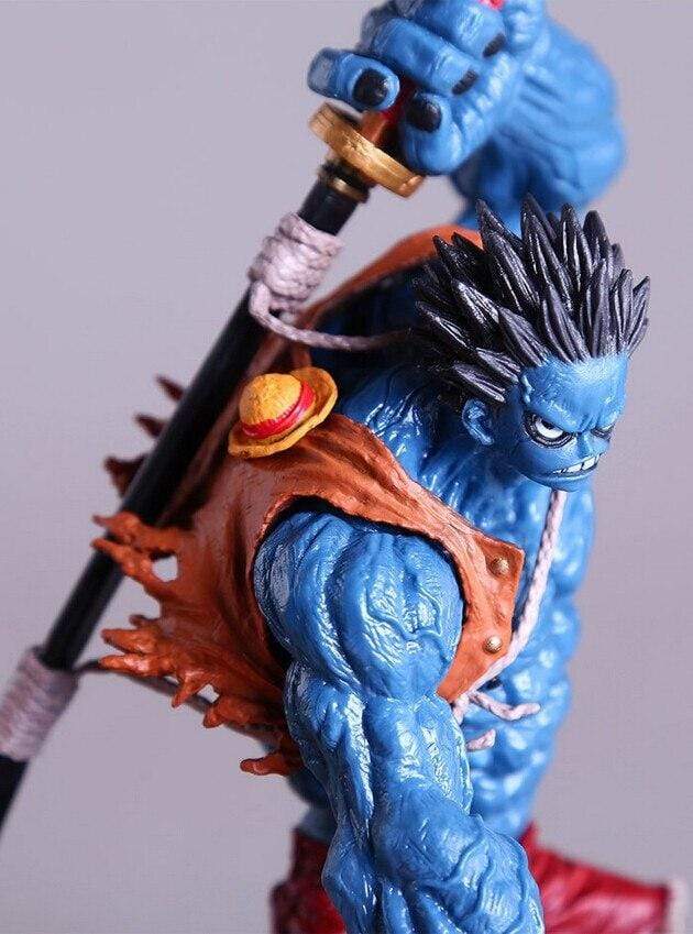 Ici, on a Nightmare Luffy qui est une transformation apparue lorsque Luffy a été contraint d'absorber une centaine d'ombres contre sa propre volonté. Cela le rend très puissant. D'une couleur bleue, la Figurine Luffy Nightmare montre le personnage avec une musculature impressionnante, son chapeau pendu à son cou, derrière son dos. Le chapeau est tout petit comparé à son gigantesque gabarit. Il tient un katana, porte son gilet et un pantalon court rouge.